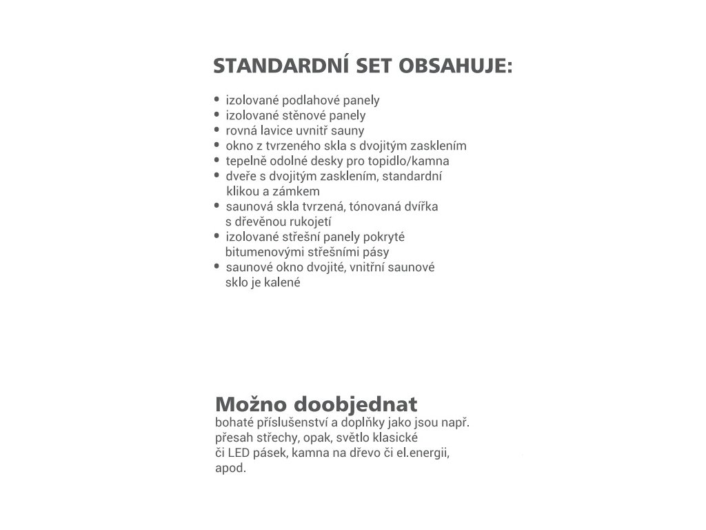 • obsahuje saunové lavice, místo pro umístění saunových kamen